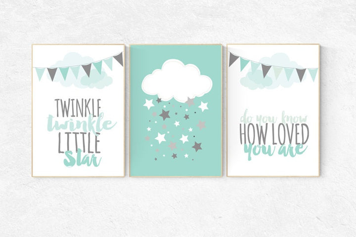 Mint nursery decor, Twinkle Twinkle Little Star, gender neutral baby, new baby gift, mint gray, baby room decor, kids room decor, playroom