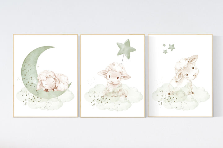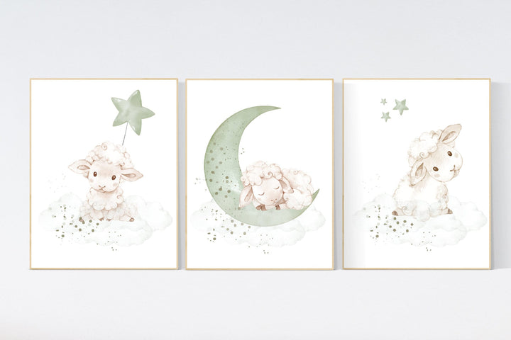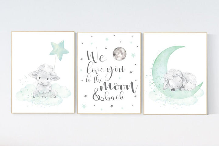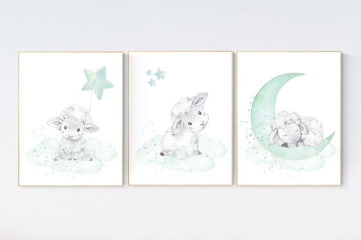 Mint nursery decor, nursery decor lambs, Sheep nursery decor, nursery wall art sheep, gender neutral nursery, cloud and star, mint green
