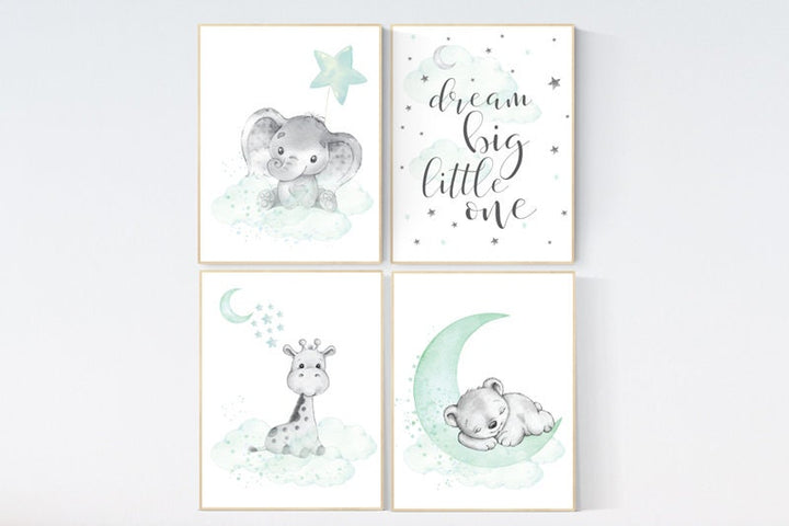 Mint nursery decor, nursery decor elephant, dream big little one, nursery decor neutral, nursery decor boy mint, cloud and star nursery