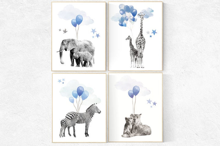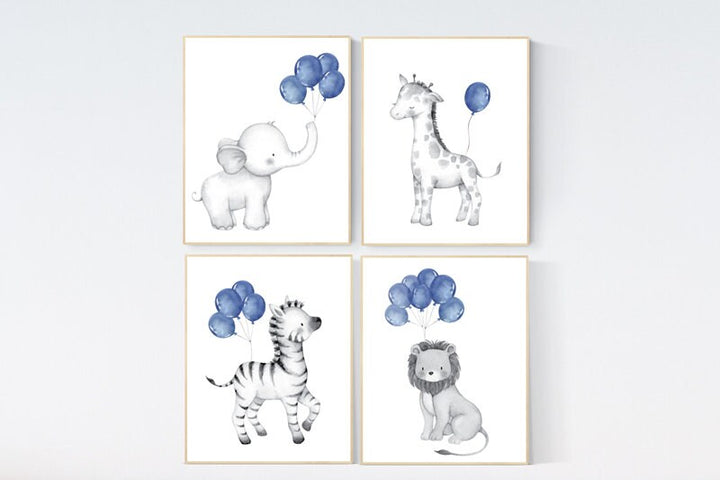 Navy blue wall art, Baby animal prints, Safari Nursery, watercolor animals for nursery, navy nursery, nursery decor elephant, animal nursery