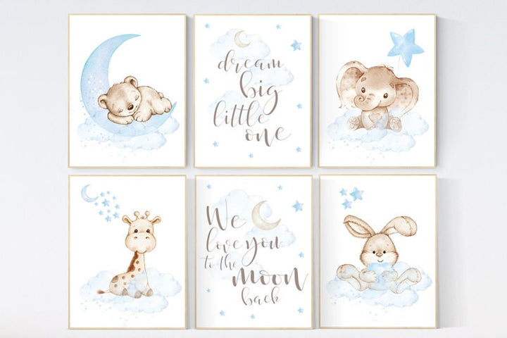 Animal nursery wall art, elephant, giraffe, bear, boy nursery decor, navy nursery, boy nursery wall art, we love you to the moon and back