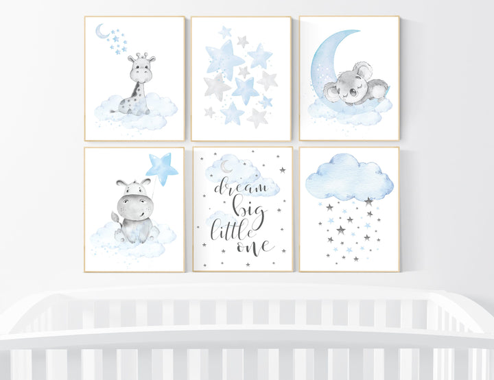 Animal nursery, Nursery decor boy koala, giraffe, hippo, baby blue nursery, boys room decor, blue gray, animal prints, animal prints