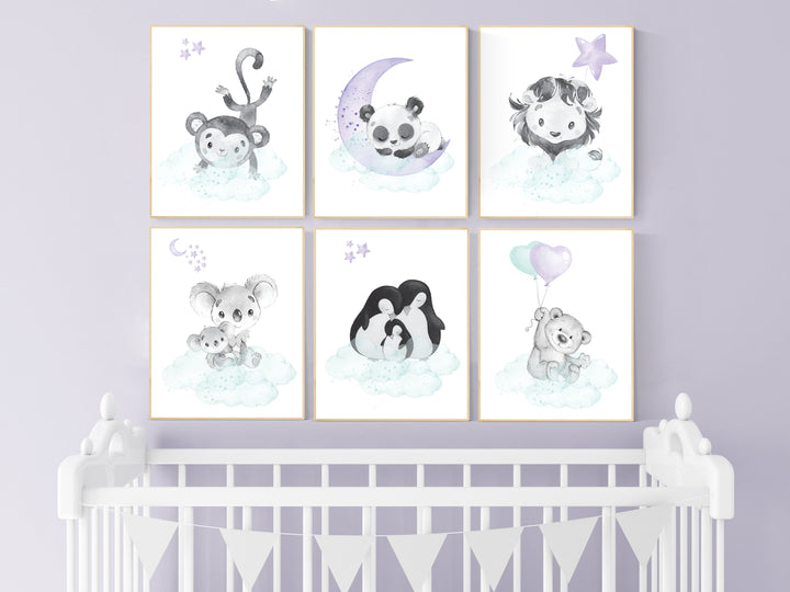 Animal nursery prints, Purple teal nursery, nursery decor girl, animal prints, purple nursery, baby nursery room decor, girl nursery