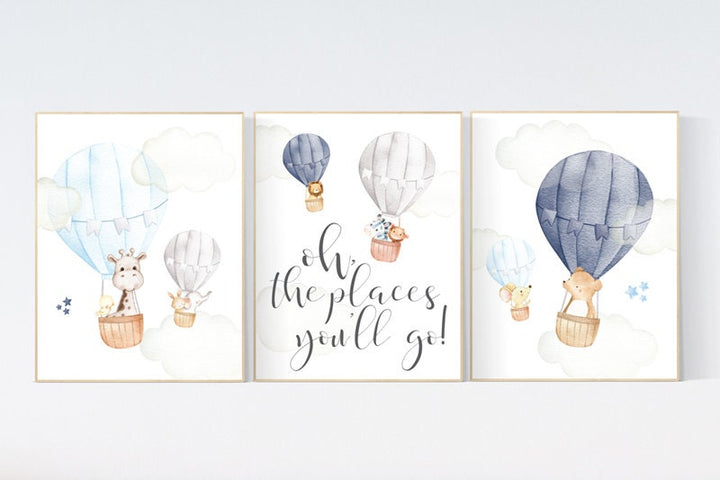 Nursery art neutral, hot air balloon nursery, gender neutral, Oh the places you'll go, moon and stars, baby room decor, nursery prints