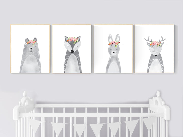 Nursery decor animals, woodland nursery decor girl, animal prints for nursery girl, bunny print for girls nursery, Woodland Nursery Art