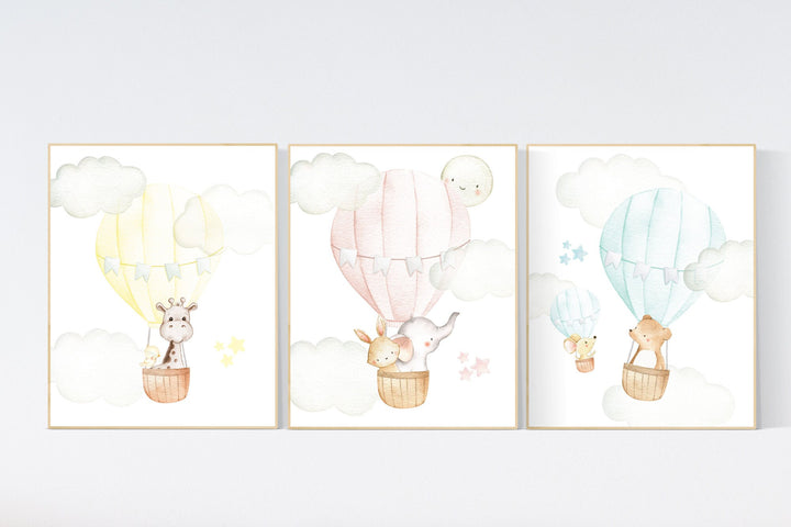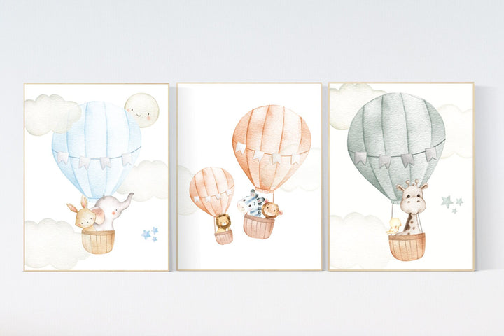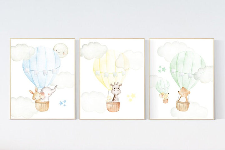 Nursery decor animals, hot air balloon, gender neutral, nursery decor, animal nursery, neutral, unisex, animal prints, nursery wall art