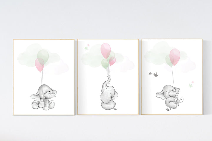 Nursery decor animals, neutral nursery, Pink, sage green nursery, elephant nursery, green, pink nursery, gender neutral, balloon nursery