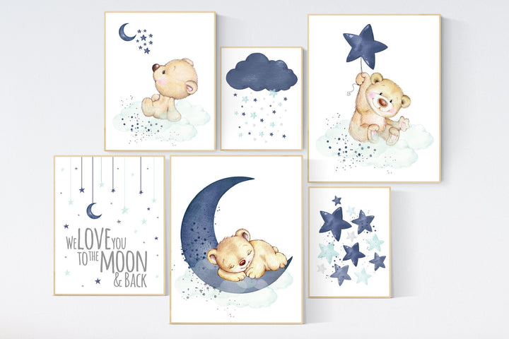 Nursery decor bear, animal nursery prints, navy nursery, navy blue nursery, baby room wall art, woodland animal prints, teddy bear nursery