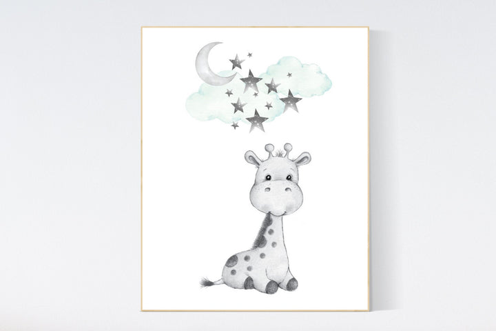 Nursery decor animals, mint nursery decor, giraffe nursery art, nursery decor giraffe, nursery decor neutral, gender neutral