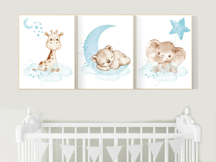 Nursery decor animals, teal nursery, Gender neutral nursery wall art, elephant, giraffe, bear, teal and grey, woodland, animal prints