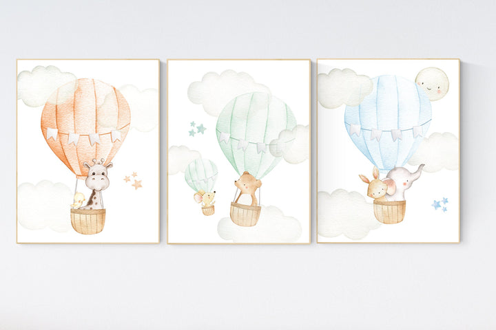 Nursery decor animals, hot air balloon, gender neutral, nursery decor, animal nursery, neutral nursery, animal nursery, nursery wall art