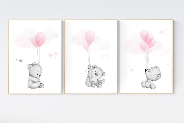 Nursery decor bear, girl nursery decor, pink nursery room, teddy bear decor, bear nursery print, nursery wall art animals, girls room decor