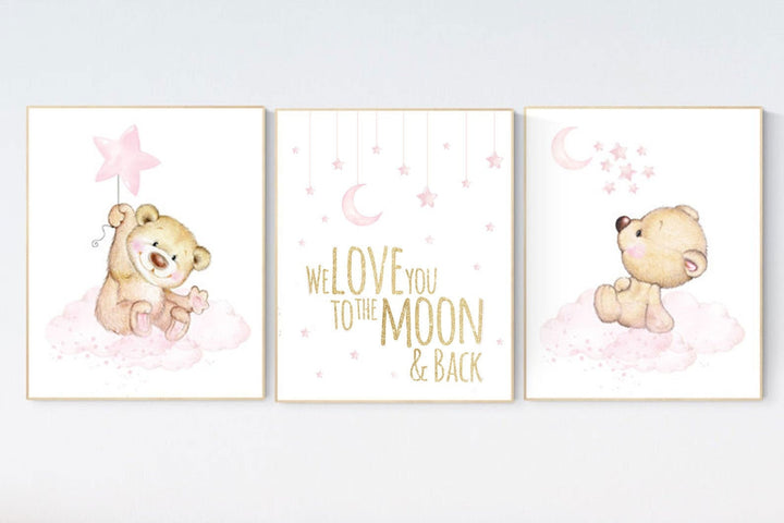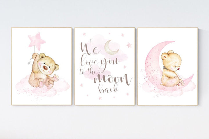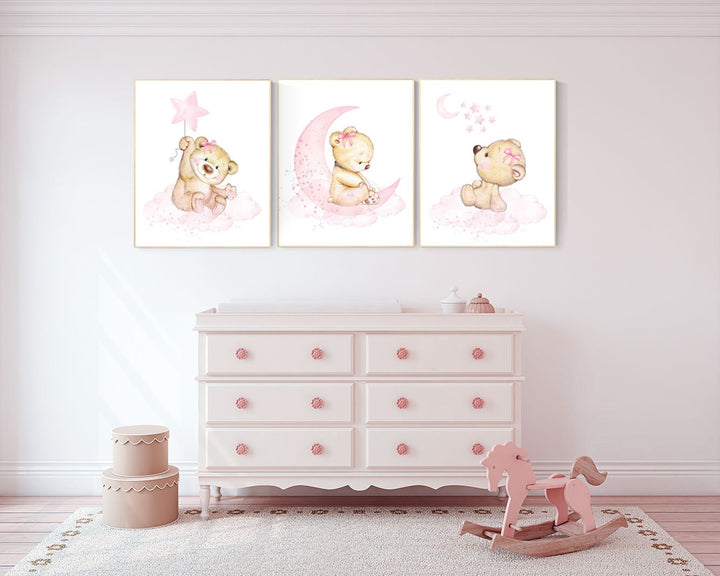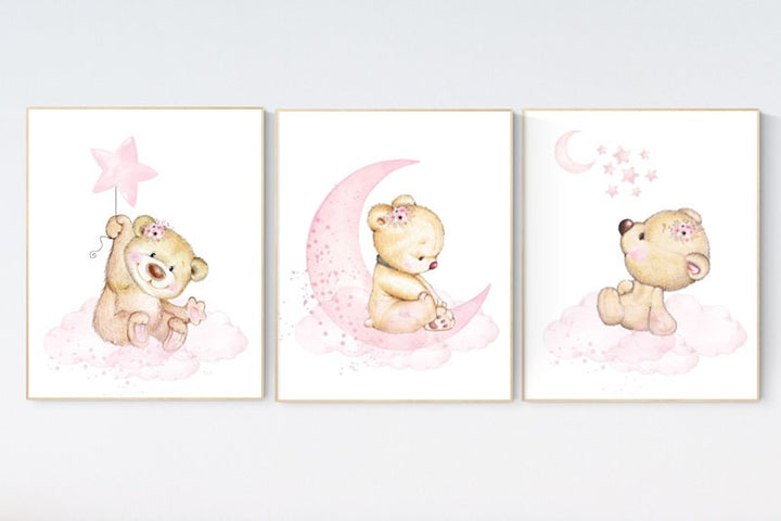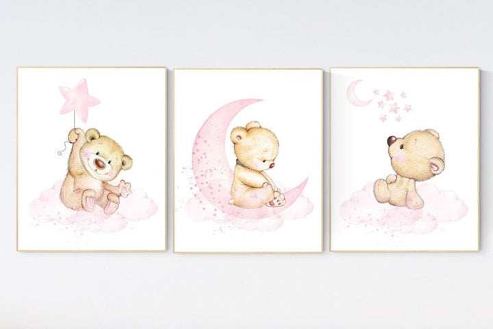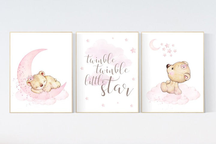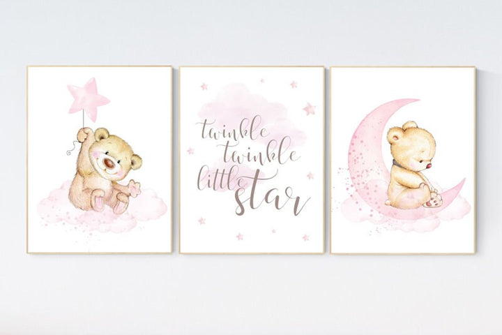 Nursery decor bear, bear nursery decor for girls, twinkle twinkle little star, girl wall art, nursery wall art girl nursery pink nursery art