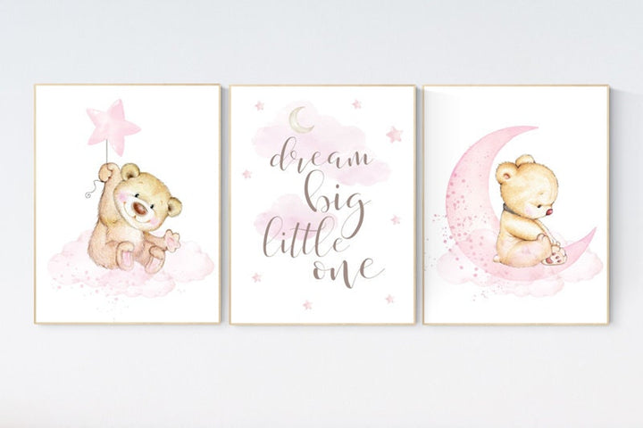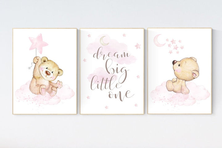 Nursery decor bear, bear nursery decor for girls, dream big little one, girl wall art, nursery wall art girl nursery pink nursery art