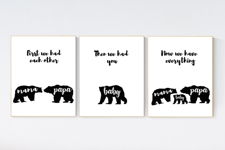 Nursery decor bear, first we had each other then we had you now we have everything, mama bear, papa bear, bear family, nursery wall art