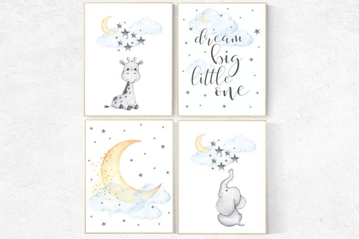 Nursery decor elephant, dream big little one, nursery decor elephant and giraffe, Nursery decor neutral, moon and stars, gender neutral