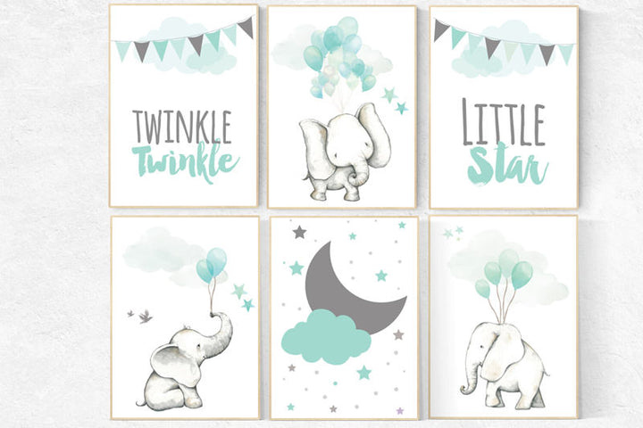 Nursery decor elephant, mint nursery decor, twinkle twinkle little star, gender neutral nursery, animal balloons, nursery decor mint green