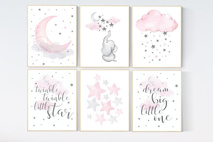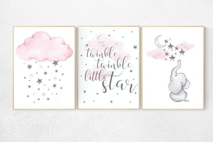 Nursery decor elephant, Girls room decor, Nursery decor girl pink and gray, pink nursery, Elephant nursery, twinkle twinkle little star