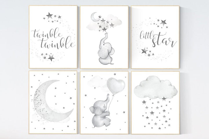 Nursery decor elephant, gray nursery, moon and stars, grey nursery, neutral nursery, gender neutral, elephant, unisex, neutral nursery