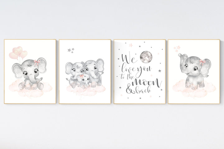 Nursery decor elephant, girl nursery, blush pink, elephant nursery, nursery decor girl elephant, we love you to the moon and back