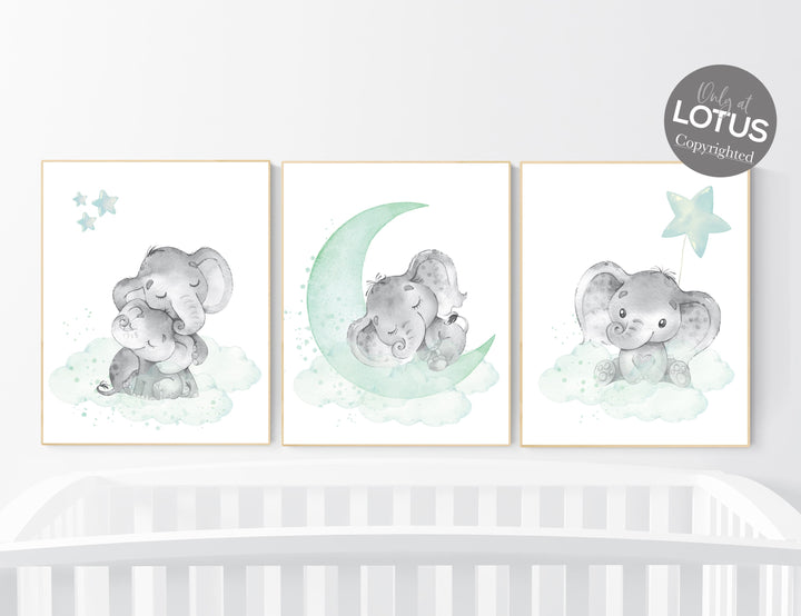 Nursery decor elephant, mint green nursery, nursery decor neutral, nursery decor mint, nursery decor boy teal, mint and grey, gender neutral