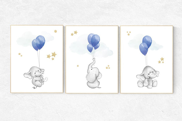Nursery decor elephant, navy elephant nursery gender, neutral nursery prints, nursery wall art animals, elephant balloon, navy and gold