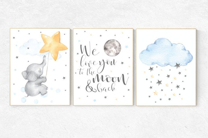 Nursery decor elephant, neutral nursery, Gender neutral nursery, we love you to the moon and back, Baby wall decor, baby room decor, moon