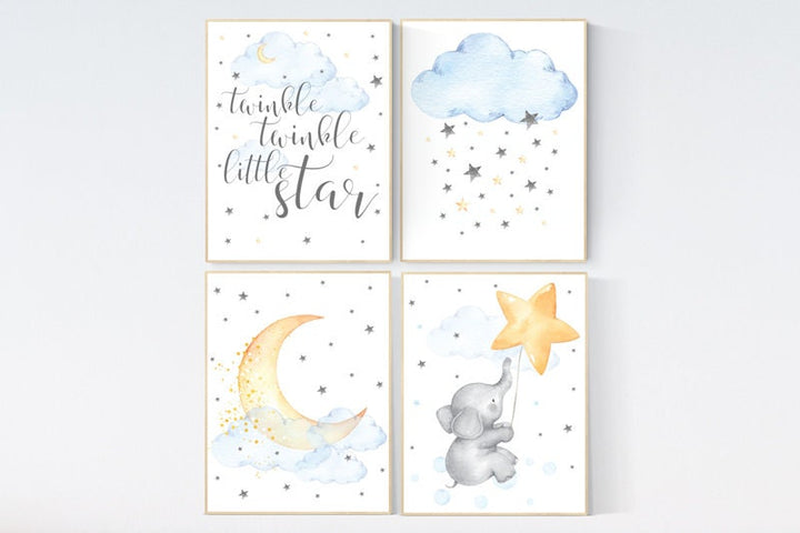 Nursery decor elephant, navy gold nursery decor, twinkle twinkle little star, moon and stars, elephant nursery, twinkle twinkle little star