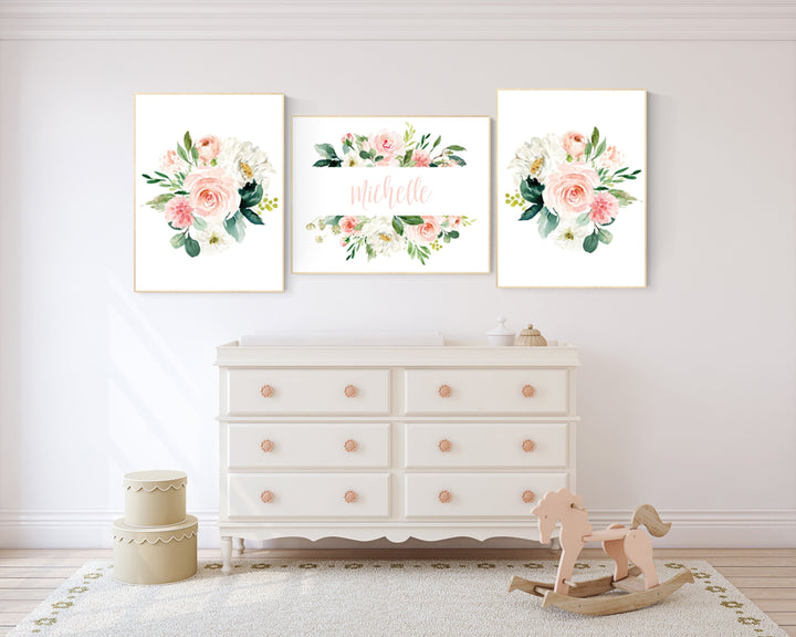 Nursery decor girl blush, nursery decor girl floral, rose, blush pink, nursery decor flower, nursery wall art, floral nursery.