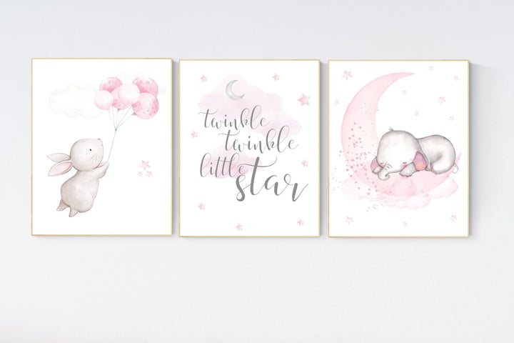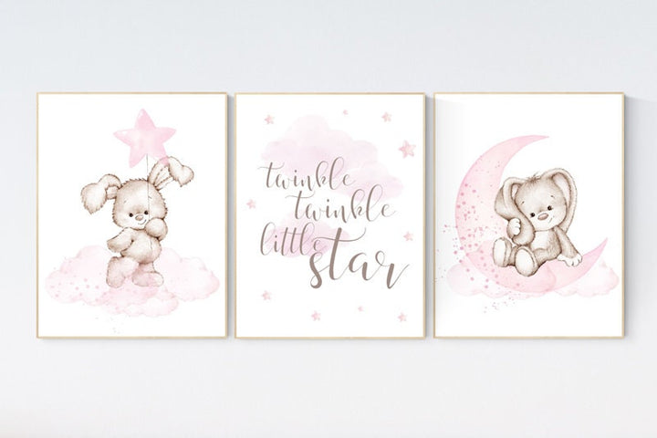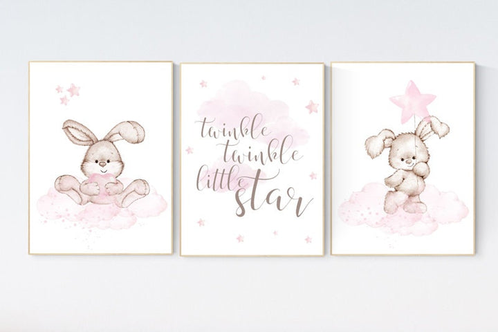 Nursery decor girl bunny, bunny print set, twinkle twinkle little star, rabbit nursery, girl nursery, nursery wall art bunny, Bunny print