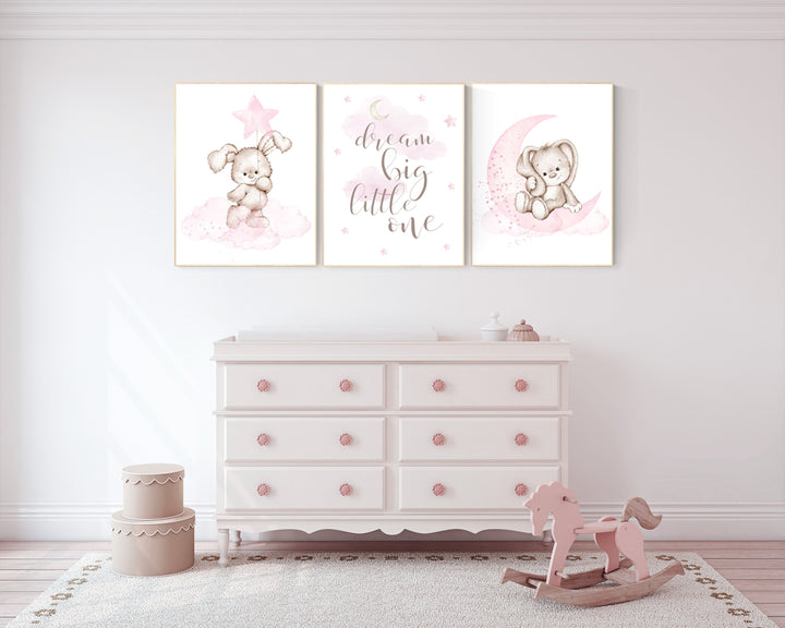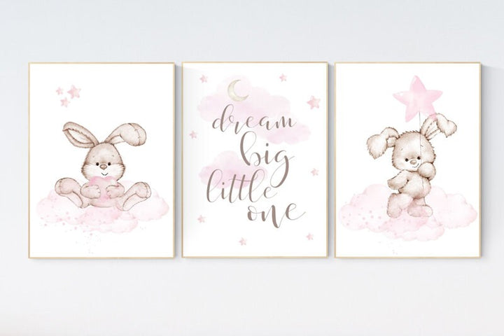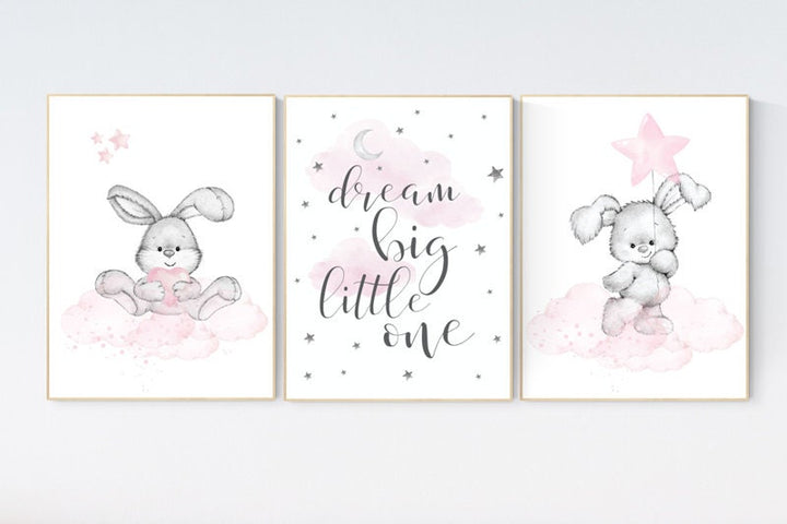 Nursery decor girl bunny, bunny print set, dream big little one, rabbit nursery, girl nursery, nursery wall art bunny, Bunny print nursery