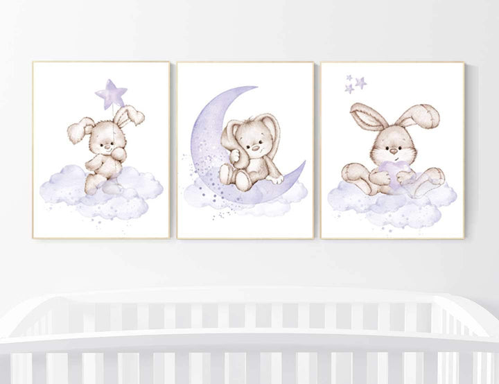 Nursery decor girl bunny, Purple nursery decor, Nursery decor girl flower bunny, lilac, lavender, bunny print nursery girl, rabbit print