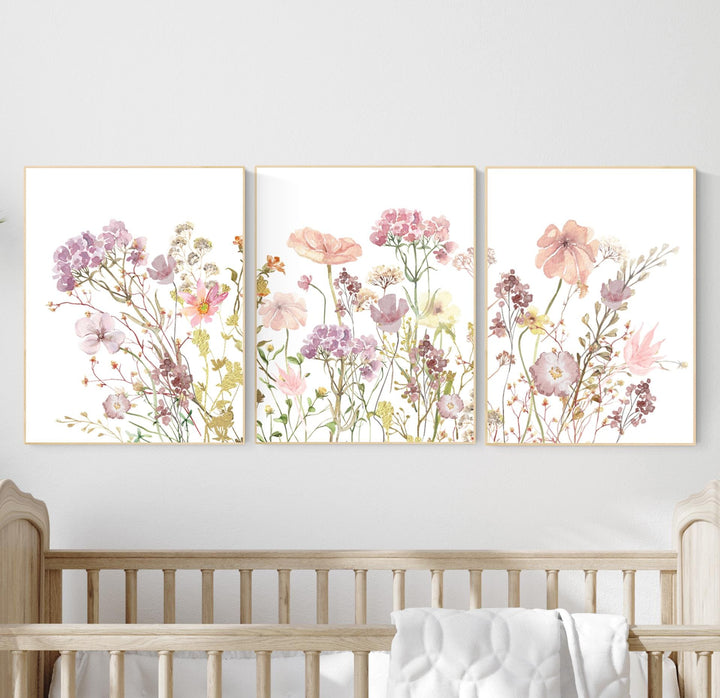 Wildflower print nursery, nursery decor girl wildflower, nursery wall art girl, boho nursery wall art wildflower, flower nursery wall art