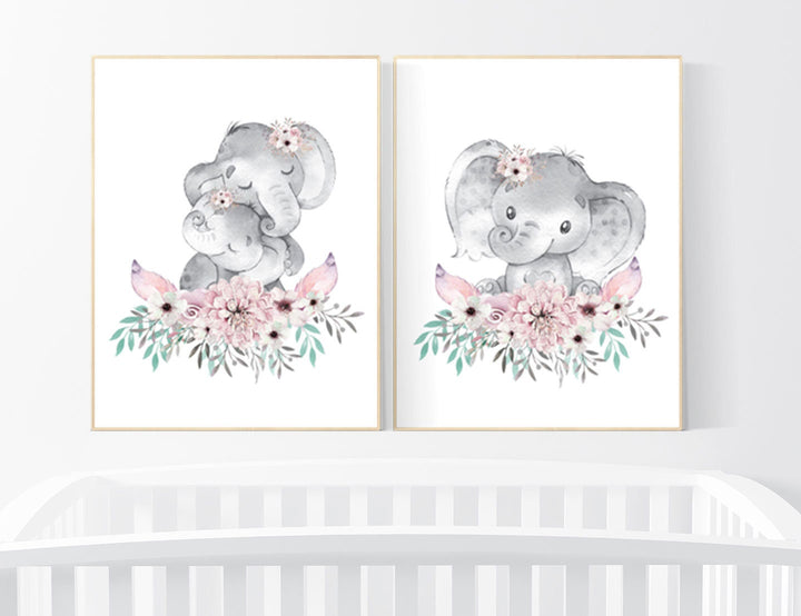 Nursery decor girl boho, elephant nursery wall art, nursery decor girl floral, nursery decor girl woodland, floral nursery, boho nursery