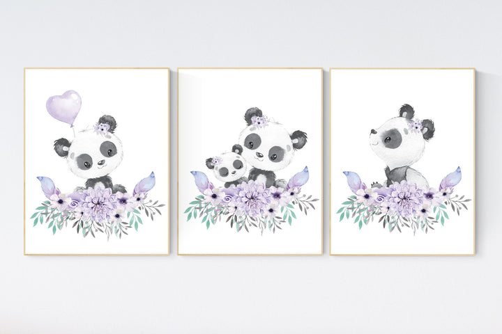 Purple teal nursery, Boho baby room, nursery wall art panda, nursery decor girl, nursery decor girl floral, lilac nursery decor, lavender