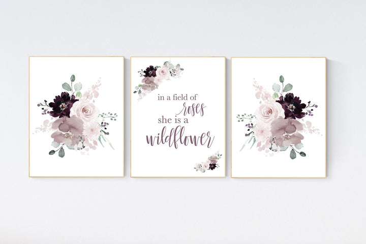 Nursery decor girl purple, dark mauve, dark Burgundy, floral nursery, flower nursery, butterfly, nursery prints girl, nursery wall decor