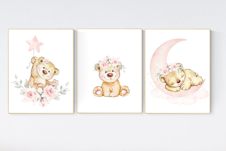 Nursery wall art bear, nursery decor girl, boho nursery, bear nursery print, floral prints, nursery prints boho, baby girl wall art, bear