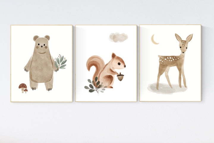 Boho Nursery Decor, woodland nursery, gender neutral nursery, animal prints, neutral colors, Boho prints, kids room art, woodland animals