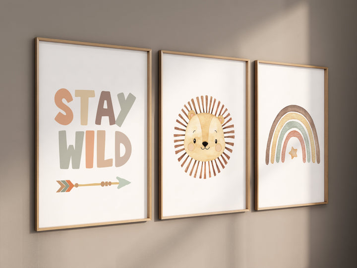 Boho nursery, lion nursery, stay wild, Safari nursery, Rainbow prints, Jungle nursery, gender neutral, earth colors, Kids room, toddler