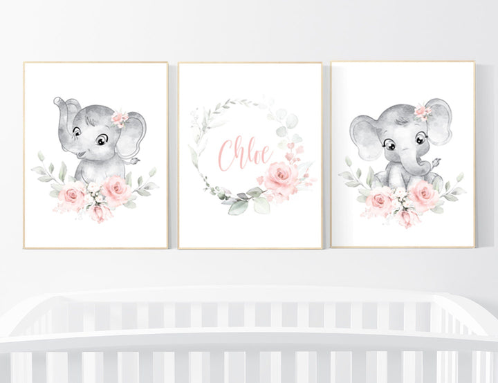 Nursery decor girl flower, blush, elephant nursery wall art, nursery decor girl floral, nursery decor girl woodland, floral nursery, boho
