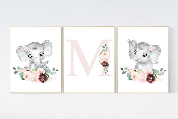 Nursery decor girl boho, blush, elephant nursery wall art, nursery decor girl floral, nursery decor girl woodland, floral nursery, boho