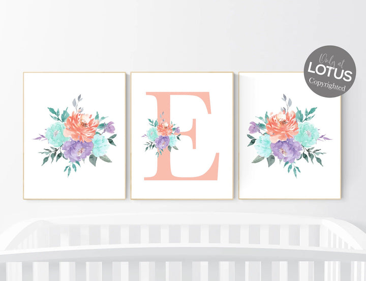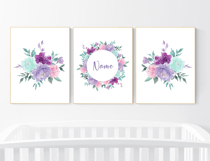 Nursery decor girl boho, nursery decor girl floral, floral nursery decor, flower nursery decor, purple teal nursery, girl nursery decor