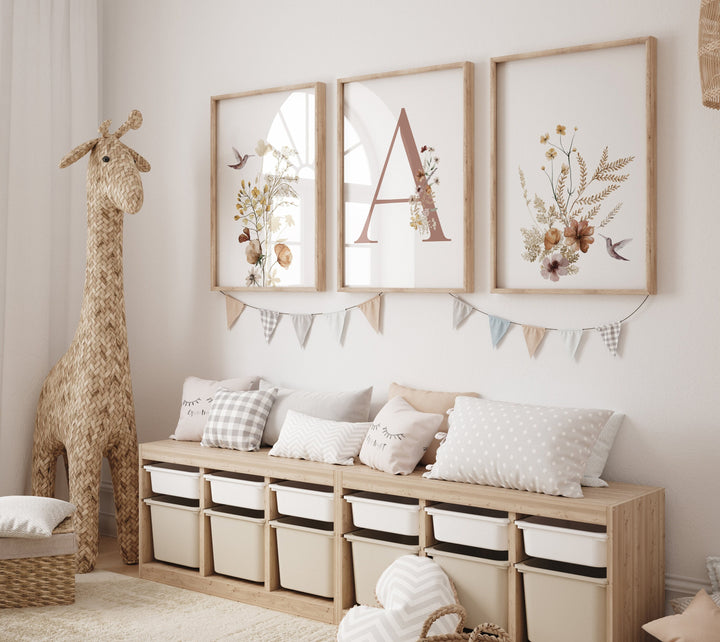 Boho Nursery, Wildflower Nursery Decor, hummingbird nursery, Girl Nursery Decor, flower nursery, vintage flower nursery print, Botanical