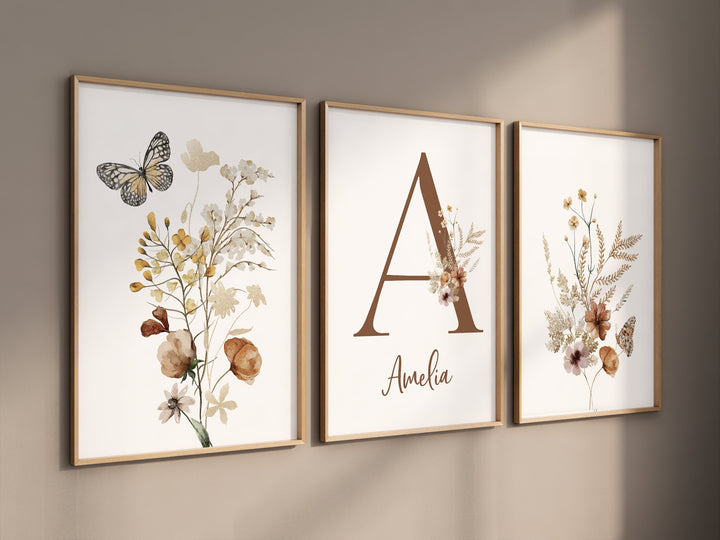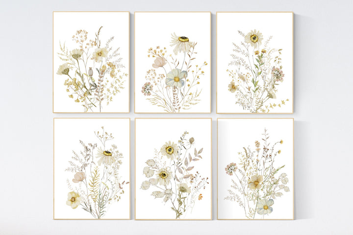 Boho Nursery wall art, Wildflower Nursery Decor, Floral Nursery, neutral colors, vintage flower, Botanical Print, home decor, cream decor