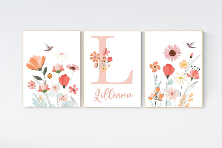 Nursery decor girl floral, nursery decor girl flowers, blush pink, nursery decor girl boho, floral nursery prints, nursery decor girl name
