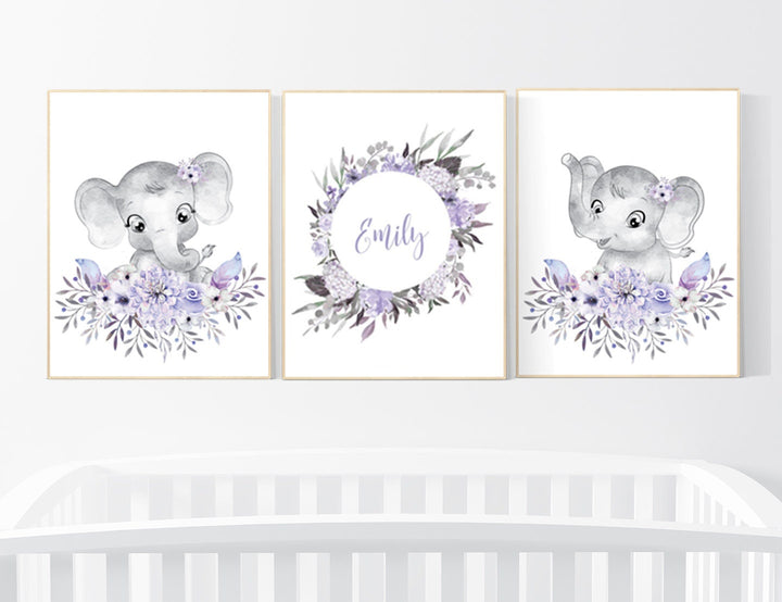 Nursery decor girl boho, Purple nursery, nursery wall art elephant, nursery decor girl, nursery decor girl floral, lilac nursery, lavender