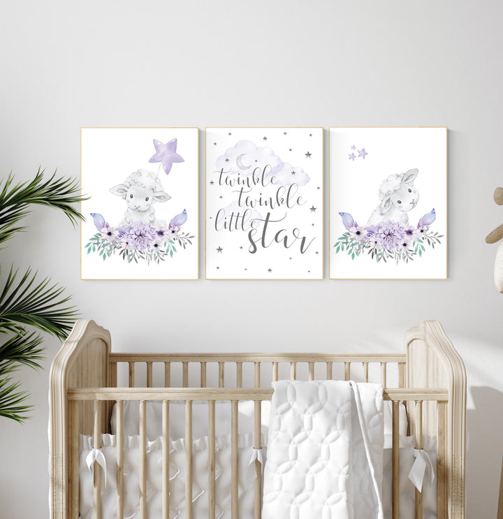 Purple nursery, Boho baby room, nursery wall art sheep, nursery decor girl, nursery decor girl floral, lilac nursery decor, lavender, lamb