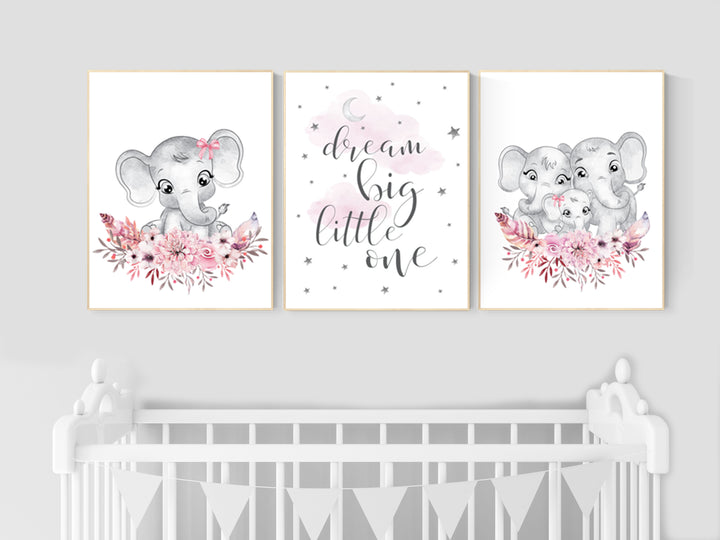 Nursery decor girl boho, elephant nursery wall art, nursery decor girl floral, girl nursery ideas