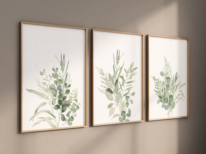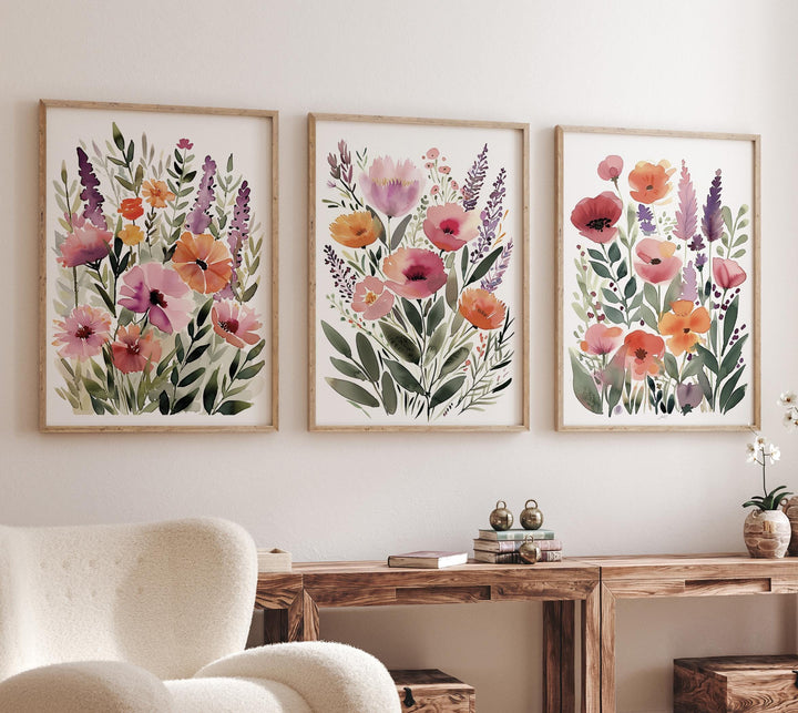 Watercolor Wildflower Print Set, Neutral Boho Botanical Art (Set of 3)