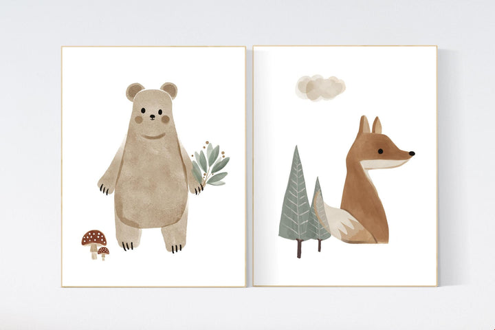 Woodland nursery decor, animal prints, boho nursery, woodland themed nursery, nursery art woodland, nursery prints, gender neutral nursery